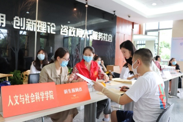 8月30日,av中文 刘书记、尹书记及研会的迎新工作人员们做好防护,早早地来到学院楼大厅迎新会场,等候各位2020级研究生新生的到来。迎新工作组在迎新现场设置了党员工作站,准备了消毒液、口罩等防护物资以及新生签名墙、南航定制矿泉水、南航纪念明信片等贴心小物,为远道而来的研究生新生们送去亲切问候。核验身份及证书、收缴有关材料、登记个人信息、系统认证注册,各项迎新工作根据原定策划案有条不紊地进行。
