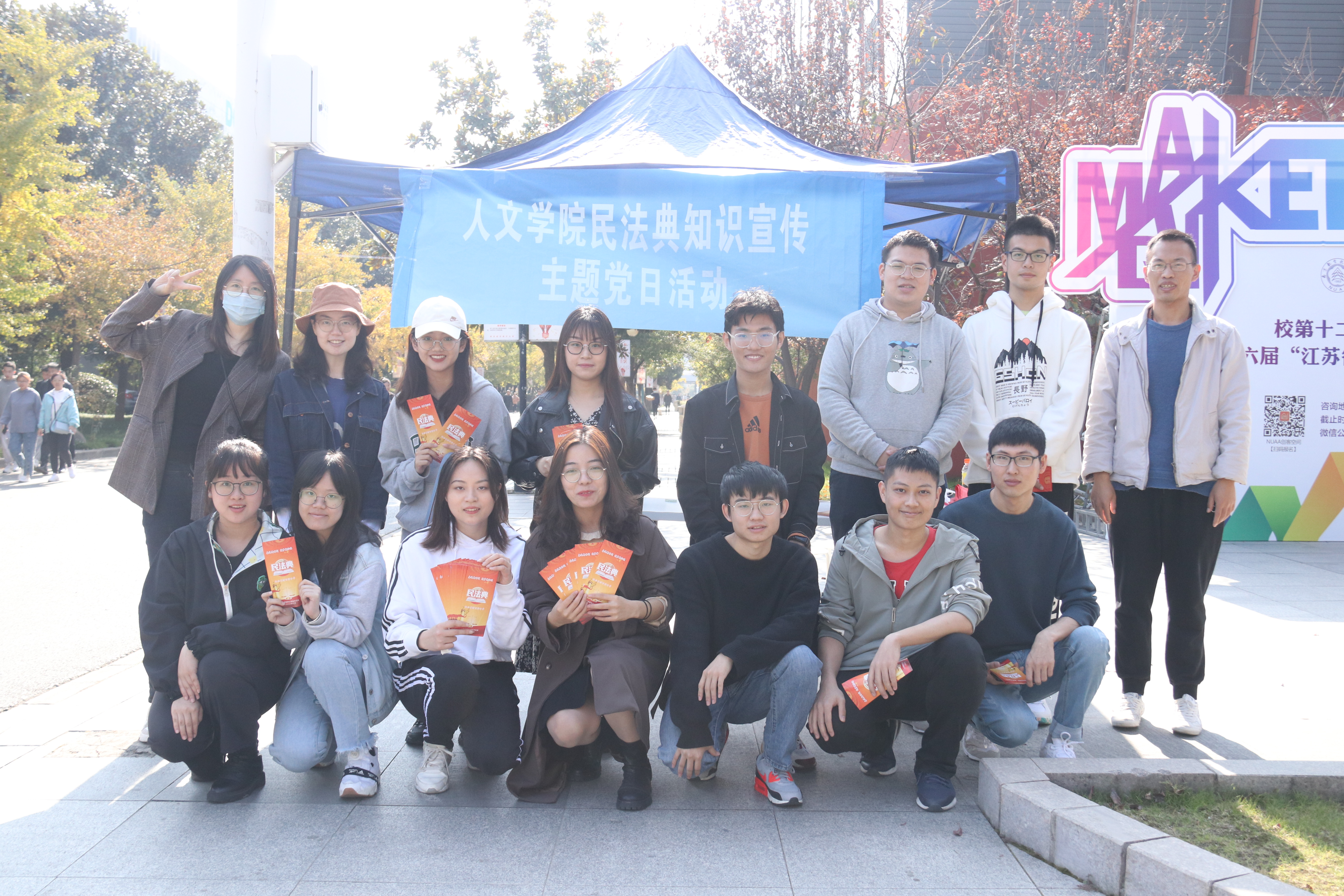 与此同时,为了加强南航学子对于民法典的了解,提高维权意识,树立法制观念,人文院学生党总支结合热点设计制作了民法典知识宣传手册,并于 11月 13日中午在馨园食堂和学生宿舍开展了普法宣传活动。