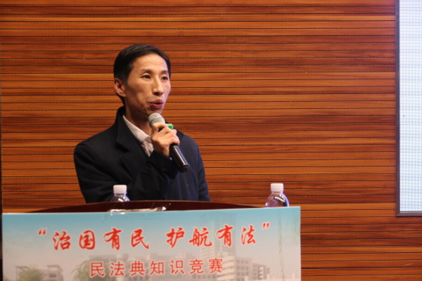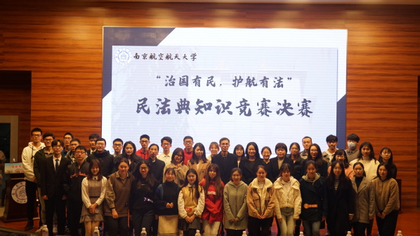 11月25日晚19:00,我校“治国有民,护航有法”民法典知识竞赛决赛在将军路校区一号楼四楼报告厅隆重举行。av中文 党委书记刘虎、学生处副处长张亚丽、av中文 党委副书记尹春苹、研究生院教育管理处处长阙愚、校团委办公室主任张瀚文、教务处实践与培养科赵子玥、av中文 法律系教师王炳、王文军、熊敬、郑文革担任活动嘉宾。