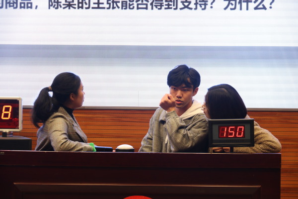 随后的中场互动环节,台下的观众们跃跃欲试,现场气氛十分活跃。最终进入决赛的四支团队在下半场专业赛中进行了一番手速的较量,团队成员们展示了对案例清晰的逻辑分析能力与高度的团队协作能力。王文军老师针对选手表现进行了专业细致的点评,将重点法条和原则应用到真实案例中,激发了同学们对学习法律的兴趣。在本次大赛最后,av中文 法律系主任王炳老师对同学们的积极参与和赛场表现给予了充分的肯定,同时鼓励同学们继续保持高度的法律热情与孜孜不倦的学习精神。
