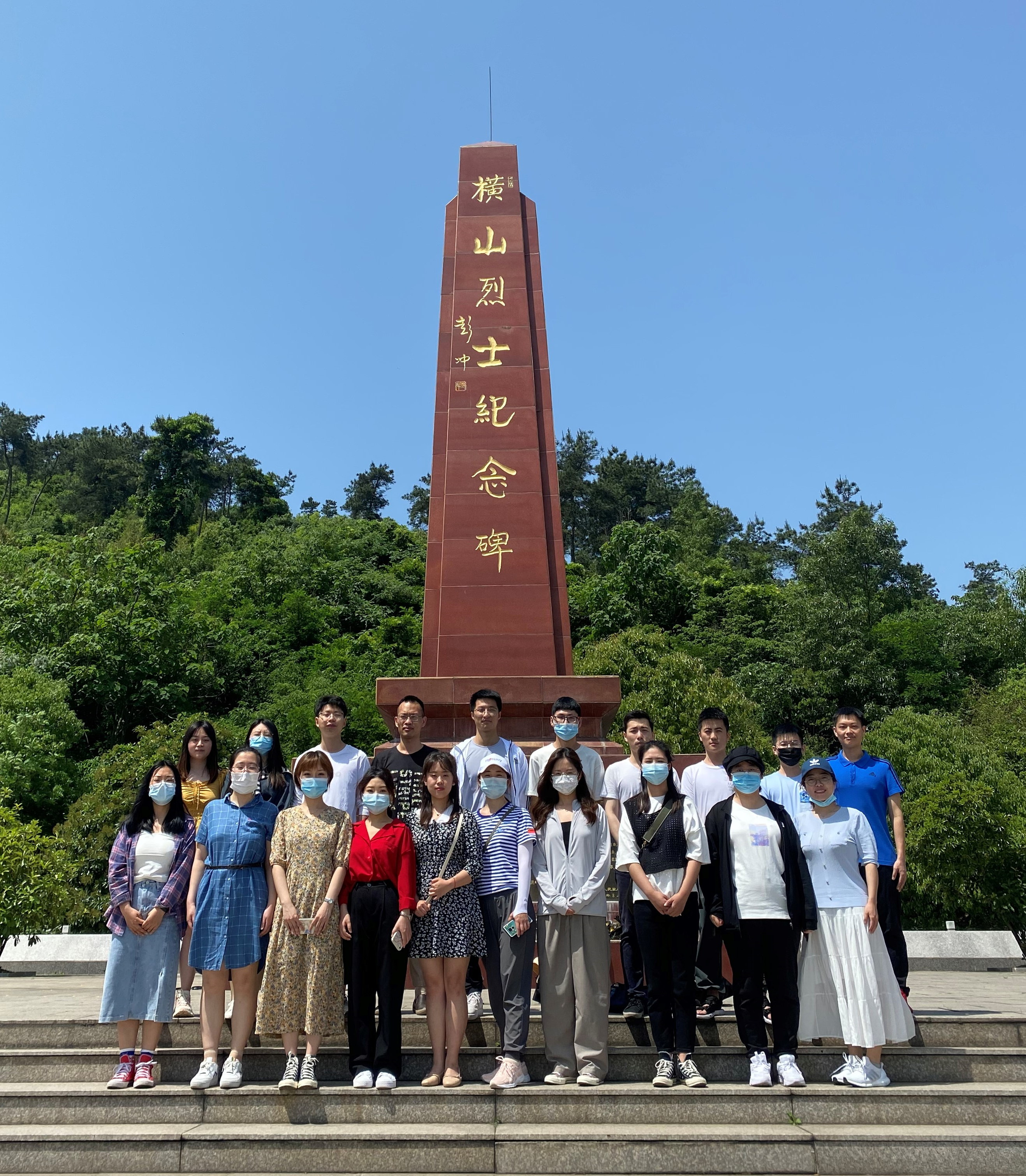 横山烈士纪念碑位于南京市江宁区禄口街道铜山集镇3公里处的横山山脉章山东北坡,烈士墓碑就矗立在松海之中,墓内安放着新四军新三团战士王伟等10多名烈士的遗骸。支部成员在纪念碑及浮雕墙进行瞻仰学习,共话英雄光辉事迹,追忆革命不朽历程。