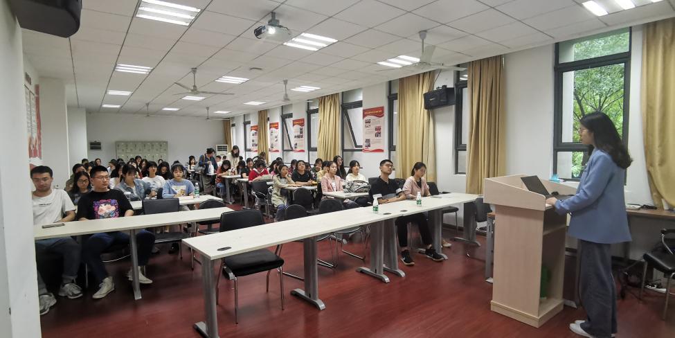 聂小芳则结合近一年来带毕业班的经验,为大家分析了近几年来的就业形势、就业现状,还对招聘流程、招聘方式、有效招聘信息收集、招聘黄金时间把握等内容作出了具体指导。通过分析历年考研数据、进行考研心理建设等分享,帮助学生在直接就业和继续深造之间理性选择,度过迷茫期。