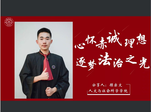 顾宗文同学目前以专业第一名的成绩保研至北京大学学习,在会议中,顾宗文从如何确定未来发展目标、如何培养核心竞争力、如何促进个人长远发展三方面着手,提出大学四年要不断提升自己思考的能力,并拓展自己的兴趣领域,以此度过充实的大学生活。顾宗文同学鼓励同学们除了学习以外,要多加培养自己的综合素质能力,他结合自己在学校社团实践、法院实习与普法活动等经历,鼓励同学们积极尝试,争取跟更多的短见机会。在发言的最后环节,他富有哲理性地开导同学们不要害怕失败,某种程度上种种挑战更加可以使自己锻炼成长。