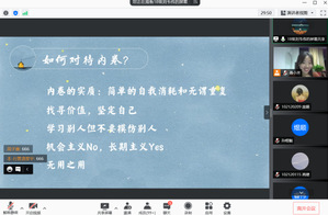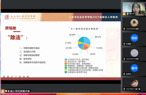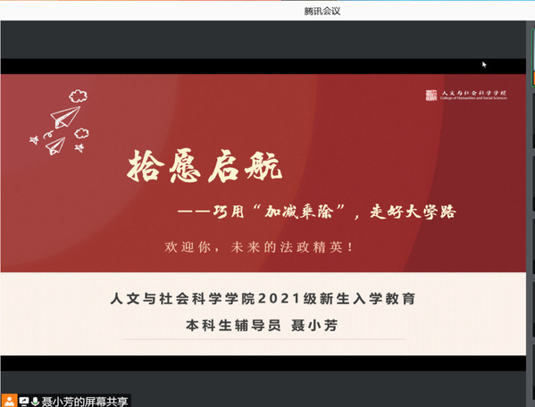 经过高考的洗礼,广大学子抱着对“象牙塔”的憧憬与渴望,来到这期盼已久而又陌生的环境。如何让这些刚入学的大一新生尽快适应大学的学习生活,是我们高校辅导员所面临的问题,也是辅导员工作是否能够顺利开展下去的基础。10月7日晚,av中文 召开了“拾愿启航——巧用’加减乘除’走好大学路”公开月讲评,辅导员聂小芳主讲,2021级全体本科生线上参加。