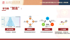 大学不同于高中,学习不再被限定为书本的学习,习总书记曾说过,我们不仅要读有字之书,更要读无字之书。列出大学期间阶段性目标,帮助学生有的放矢的把握大学生活。同时将在大学中学生面对学子的态度不同而分成的三类人群,鼓励同学们端正态度,注重良好学习习惯的培养,特别结合了适合文科专业学习特点,为学生介绍了几种高效学习模型,此环节邀请2018级政治学与行政学专业优秀学生刘韦伟同学现身说法分享阅读的经验。