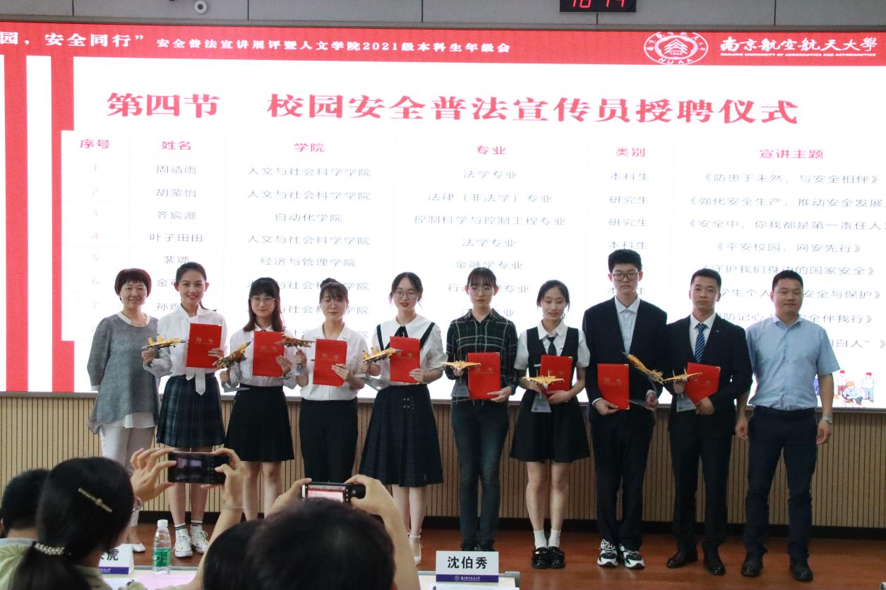 本次宣讲展评有助于进一步提升师生们的法律意识、安全意识、红线意识,对于营造安全有序、和谐稳定的校园法治环境,建设“平安南航”起到积极作用。(作者:聂小芳 供图:龚星宇)
