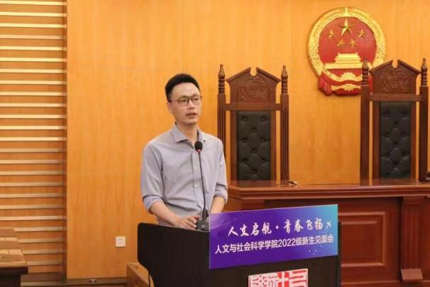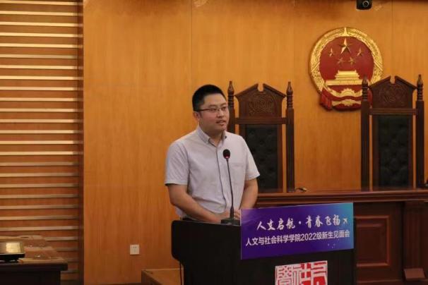 9月7日上午10点,av中文 2022级新生见面会在学院模拟法庭隆重举行。研究生院副院长郑祥明,av中文 党委书记楚广兴、副院长茅晓嵩,2010届本科毕业生、2013届硕士毕业生、金基集团人力总监胡超,学院系主任、本科生新生班主任、教务员、团委书记、辅导员参加了此次见面会,会议由学院党委副书记刘思辰主持。
