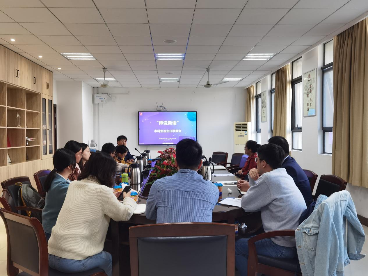 为进一步加强辅导员与本科生班主任之间的沟通交流,强化学生教育管理服务工作的协同配合,11月10日中午,av中文 召开了本科生班主任工作交流会。院党委副书记刘思辰、副院长施向峰,本科生辅导员孙长胜、聂小芳,以及各班本科生班主任参加了此次会议。(供稿:聂小芳;供图:施俞辛)