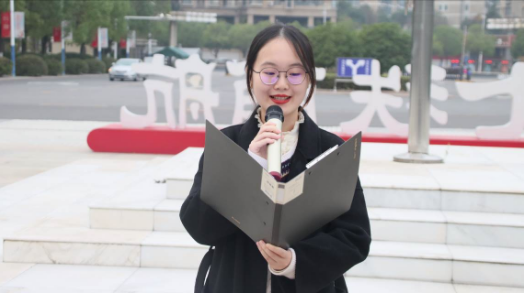 2021级法学专业学生叶子田田进行国旗下演讲——《悟全民守法之真谛,践法治中国之要义》。国无法不治,民无法不立,法治社会是构筑法治国家的基础,法治社会建设需要培育全社会依法办事的法治环境。她分享自己学法、用法、普法的实践经历,激情澎湃的演讲振奋人心,更加坚定人文青年“苦练法治内功,展示法治伟力,筑牢法治根基”的决心、信心、恒心。