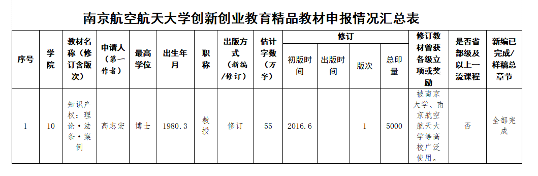 创新创业教育精品教材、案例库和数字课程申报情况的公示