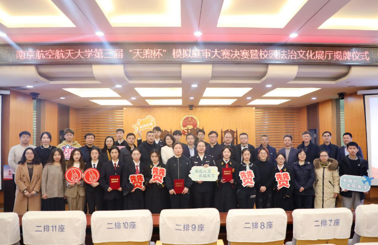 为深入学习党的二十大精神,全面贯彻习近平新时代中国特色社会主义思想,营造校园浓郁的法治文化氛围,12月7日晚,作为南航“宪法宣传周”主题活动和av中文 “清廉学院”建设系列活动之一的第三届“天煦杯”模拟庭审大赛决赛暨校园法治文化展厅揭牌仪式顺利举行。