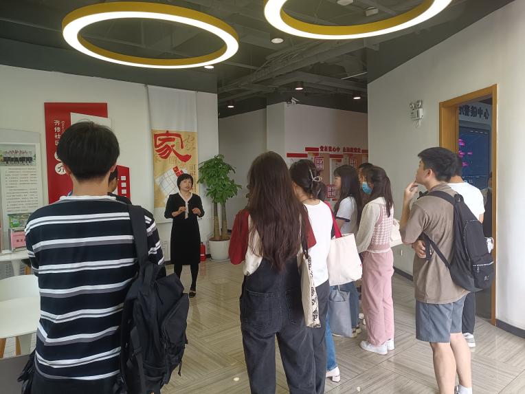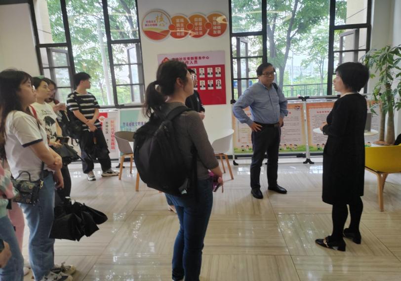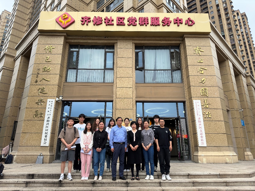 齐修社区党支部书记张福兰对学院师生的到来表示热烈欢迎,介绍了社区的特色服务项目以及近年来社区各项工作取得的成绩。社区坚持党建引领,汇聚党员、网格员、物业公司、社会组织等多方力量共同发力,努力打造“齐修社区红色集结号”。同时,社区依托数字化信息技术,建立“社区大数据信息库”,搭建智能化网格服务管理平台等,提升服务能力与水平。