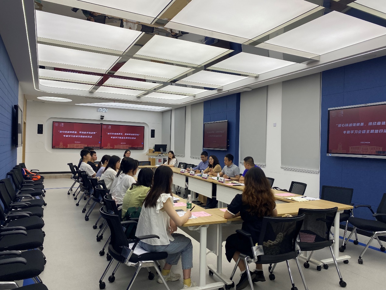 6月15日,av中文 1020101、1020201、1020301班团支部在213智慧教室联合开展“凝心铸魂强根基,团结奋进新征程”专题学习会暨主题团日活动。校信息化处处长张焱,副处长王兴虎、谢健,院党委副书记刘思辰共同参加了活动。