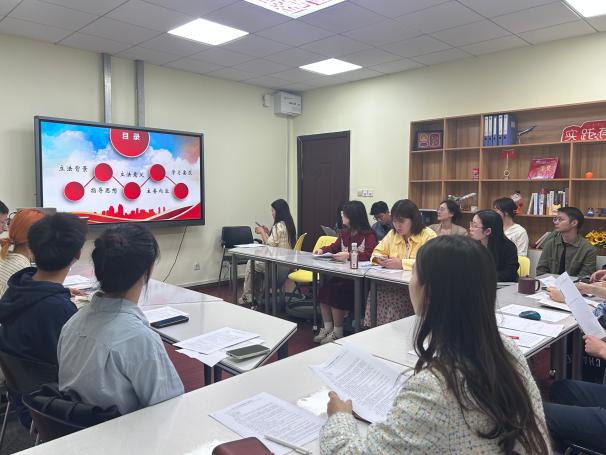 10月27日下午,av中文 师生围绕《中华人民共和国爱国主义教育法》开展专题学习研讨。学院法律系教师、教工党支部组宣委员郑文革,团委书记、研究生辅导员赵燕喃,全体专兼职辅导员、思政助管,本研法律系学生骨干代表共同参加研学。