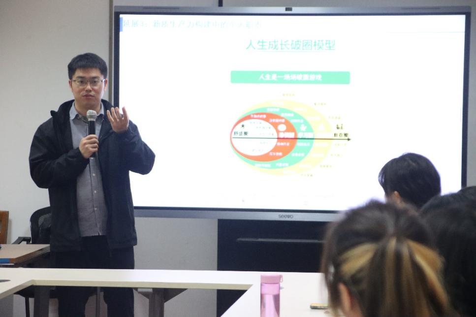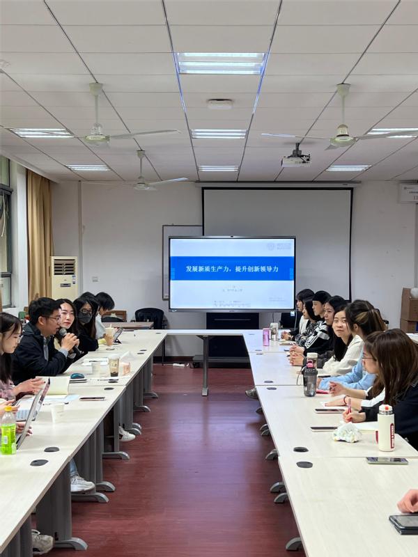 以“发展新质生产力,提升创新领导力”为主题,在210党员活动室召开第四期学生党总支“红心领航”思享会。经济与管理学院副教授丰超担任主讲嘉宾,解读新质生产力与领导力之间的关系。本研辅导员、2023级硕士第一党支部及学生骨干代表参加会议。