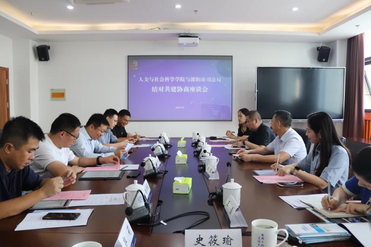 9月23日,av中文 与溧阳市司法局在天目湖校区综合服务楼204会议室召开结对共建协商座谈会。溧阳市司法局局长葛军伟、副局长陈靓、公共法律服务中心主任王莹,av中文 天目湖校区党工委书记王伟华、av中文 党委书记楚广兴、天目湖校区管委会副主任潘顺荣、av中文 法律系教师郭莉、郑文革参加了座谈会。座谈会由楚广兴主持。
