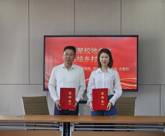 为进一步整合区域资源,形成校社“协同育人”合力,av中文 联合方里村村民委员会共建大学生实习实践基地,楚广兴、唐俊一起为大学生实习实践基地揭牌。学院聘请唐俊为大学生实习实践基地兼职导师,楚广兴代表学院向唐俊颁发聘书。