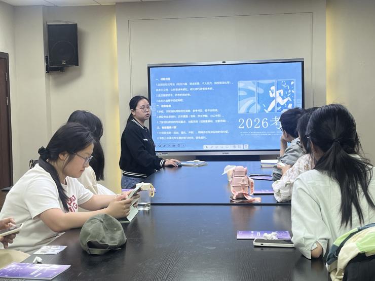 5月9日晚,“学路升花”蓄力站——考研专场主题沙龙在av中文 104教室开展。本次沙龙邀请了2021级本科生周映红、钱一骏两位同学作主讲嘉宾,与同学们分享考研备考经验。本次活动由本科生辅导员李佳宁主持。