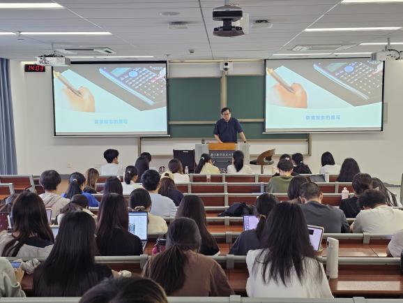 座谈交流结束后,鲁兴虎在牧星楼T1415教室面向学院2024级本科生开展“如何撰写调研报告”专题讲座,鲁兴虎从分析框架到报告撰写逐层拆解,并结合实际案例帮助大家掌握调研报告撰写的核心逻辑。