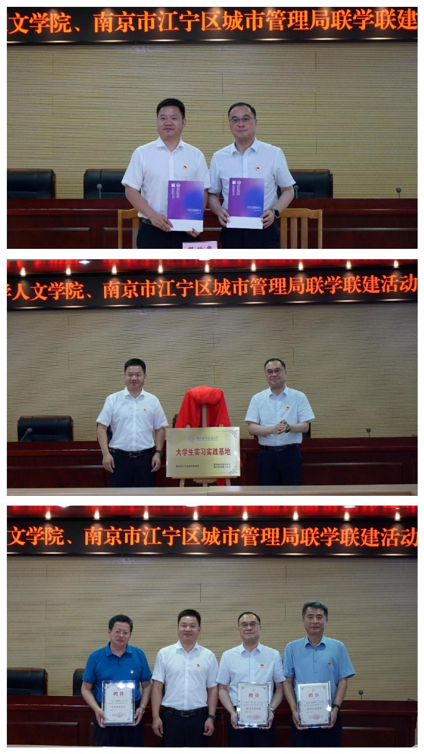 随后,双方签订合作共建协议书,院长高志宏与江宁区城管局党委书记、局长许刚共同为“大学生实习实践基地”揭牌,并颁发了校外实践导师聘书。