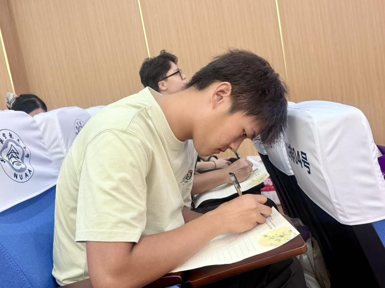 高年级学生代表带来集体诗朗诵《拾愿为桨,伴你启航》,以诗画形式分享了大学学习、生活的收获和感悟,以真挚情感传递学长学姐的关怀与期许。2025级法学专业陈韵涵作为新生代表分享了对大学生活的憧憬,表示将珍惜大学四年的青春时光,主动汲取知识、参与实践,努力成为合格的南航“人文人”。