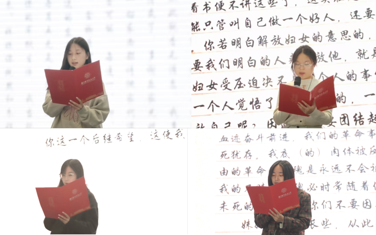 “我牺牲了我的一切,为的是我们民族的生存和解放……”“别了,我爱的人,我愿化作泥土,留在你必经的路上……”在学员诵读环节,学生代表们饱含深情地朗读雨花英烈家书原文。激昂的语调、真挚的情感,仿佛跨越时空的桥梁,将在场师生与革命先辈紧密相连。av中文 2024级学生王端端表示:“以前总觉得英烈的故事离我们很远,但今天通过家书,我仿佛能直接感受到他们的牵挂与信仰,这种精神力量让我深受震撼,也让我更加明白当代青年的责任与使命。”