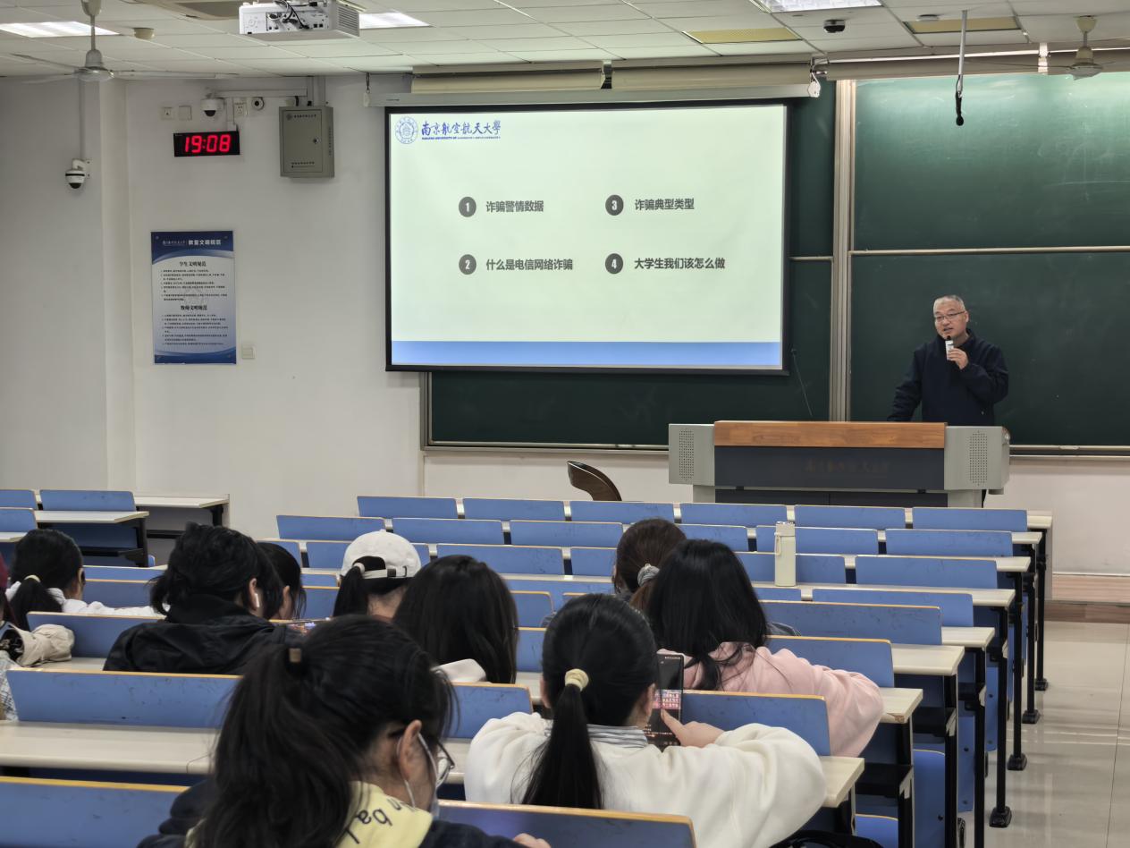 为进一步增强同学们的防诈骗意识,提高同学们对电信网络诈骗的认识,10月30日,av中文 开展“防范诈骗,守护安全”专题月讲评,邀请保卫处将军路校区保卫办主任李广主讲,月讲评由辅导员聂小芳主持。