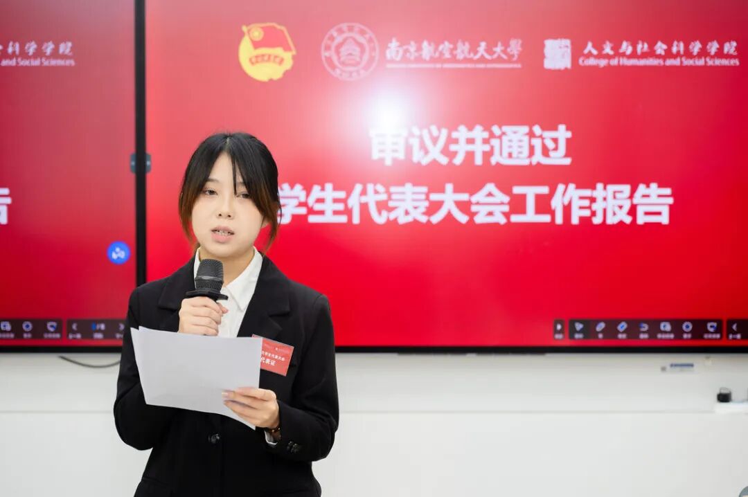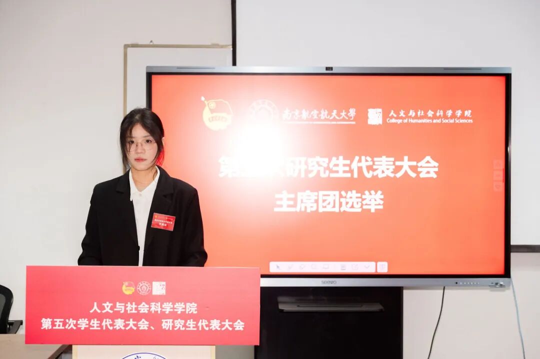 袁雯倩代表校学生会、校研究生会致辞。随后,学代会、研代会正式会议分别在院楼213、210会议室召开。白佳禾代表av中文 第四届学生会委员会作了题为《凝心笃行、筑梦人文,服务成长、聚力前行》的工作报告,周小欣代表av中文 第四届研究生会委员会作了题为《以青春之力践行服务初心,以人文之智护航成长之路》的工作报告。