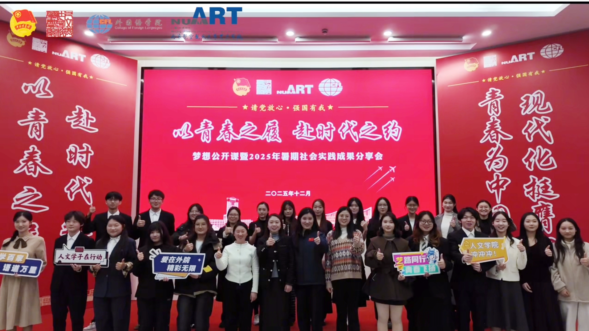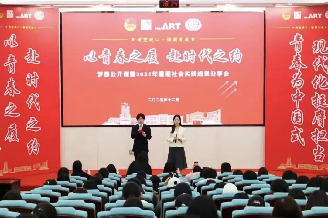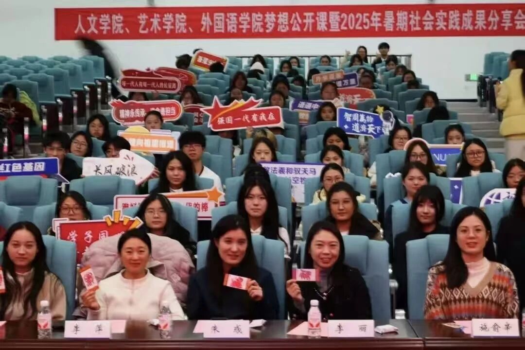 12月2日晚,由av中文 、外国语学院、艺术学院联合承办的“以青春之履,赴时代之约”梦想公开课暨2025年暑期社会实践成果分享会在天目湖校区T2110隆重举行。av中文 党委副书记李丽、校团委兼职副书记朱彧莅临指导,13支优秀实践团队作汇报分享,200余名师生到场聆听。