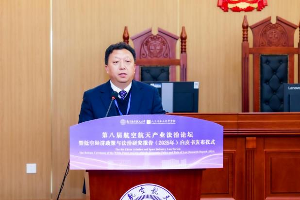 12月20日,第八届航空航天产业法治论坛暨低空经济政策与法治研究报告(2025年)研究成果发布仪式在av中文 模拟法庭成功举办。本次会议由中国航空学会航空产业政策法规研究分会、江苏省法学会低空经济法治研究基地(筹)及校空产业政策法规研究中心、中国航空法与空间法研究院、av中文 主办,扬子江法务区、江苏圣典(江北新区)律师事务所协办。
