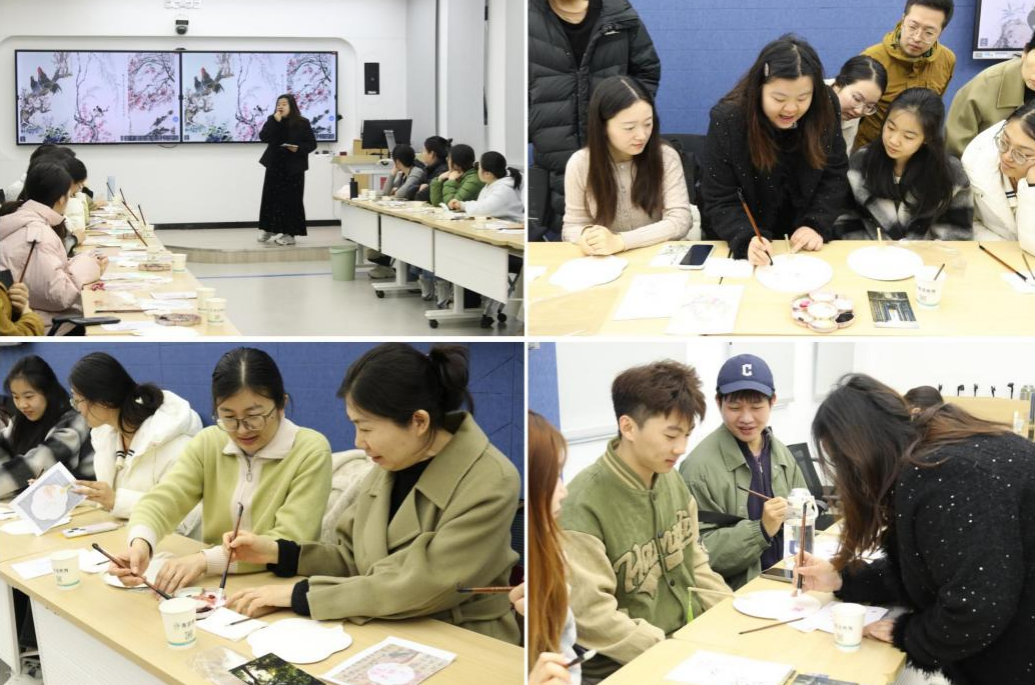 活动现场温馨雅致、墨香萦绕。在手绘老师的指导下,师生认真学习团扇绘制技巧与桃花构图方法,从勾勒线条、晕染色调,到精心绘制桃花、提笔落款,一步步将空白团扇装点成独具韵味的艺术品。大家专注落笔、静心创作,时而相互交流心得,时而彼此协助完善细节,在轻松愉悦的氛围中尽情释放创意、舒缓压力,在一笔一画中感受传统文化之美,在一言一语中拉近师生心与心的距离。