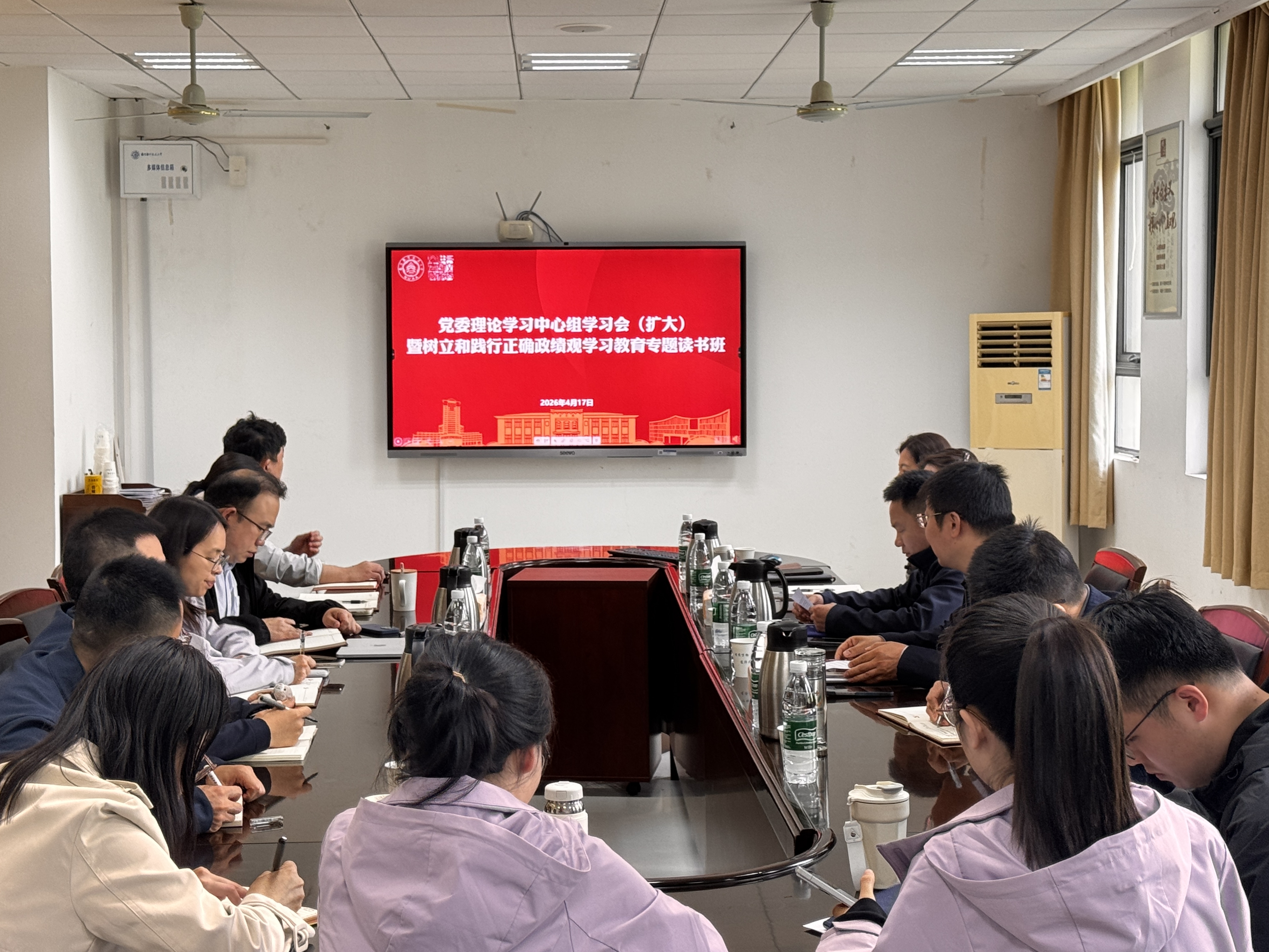 4月17日,av中文 在312会议室开召开党委理论学习中心组学习会(扩大)暨树立和践行正确政绩观学习教育专题读书班,专题学习《习近平关于树立和践行正确政绩观论述摘编》。学院领导班子、党委委员、教工党支部书记、系主任、科级干部等参加学习。会议由院党委书记楚广兴主持。