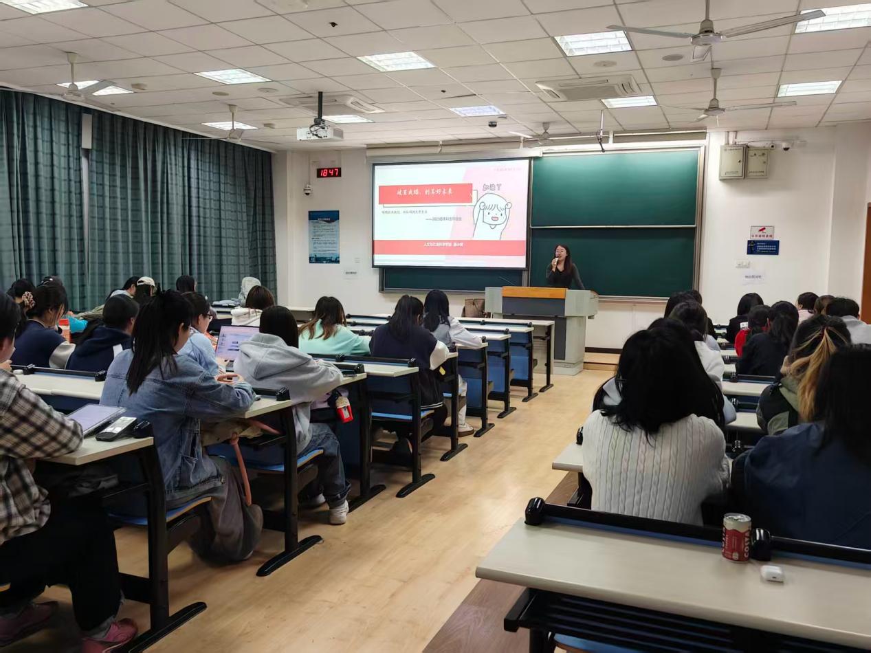 会上,聂小芳围绕升学、就业与实习等重点内容,对当前形势进行了系统分析。她指出,近年来考研竞争日趋激烈,整体录取难度提升,学生需理性评估自身情况,审慎选择报考方向。结合各专业实际,她对报考情况与发展路径进行了具体解读,强调要避免盲目跟风,科学定位目标院校与专业方向。在升学规划方面,聂小芳重点讲解了考研复习节奏与保研关键流程,建议学生们尽早明确目标,合理安排复习计划。围绕就业与发展路径,她介绍了多元选择方向,鼓励学生主动了解就业市场,积极参与招聘活动,提升对行业需求的认知,并通过多渠道获取实习机会,在实践中提升综合能力。