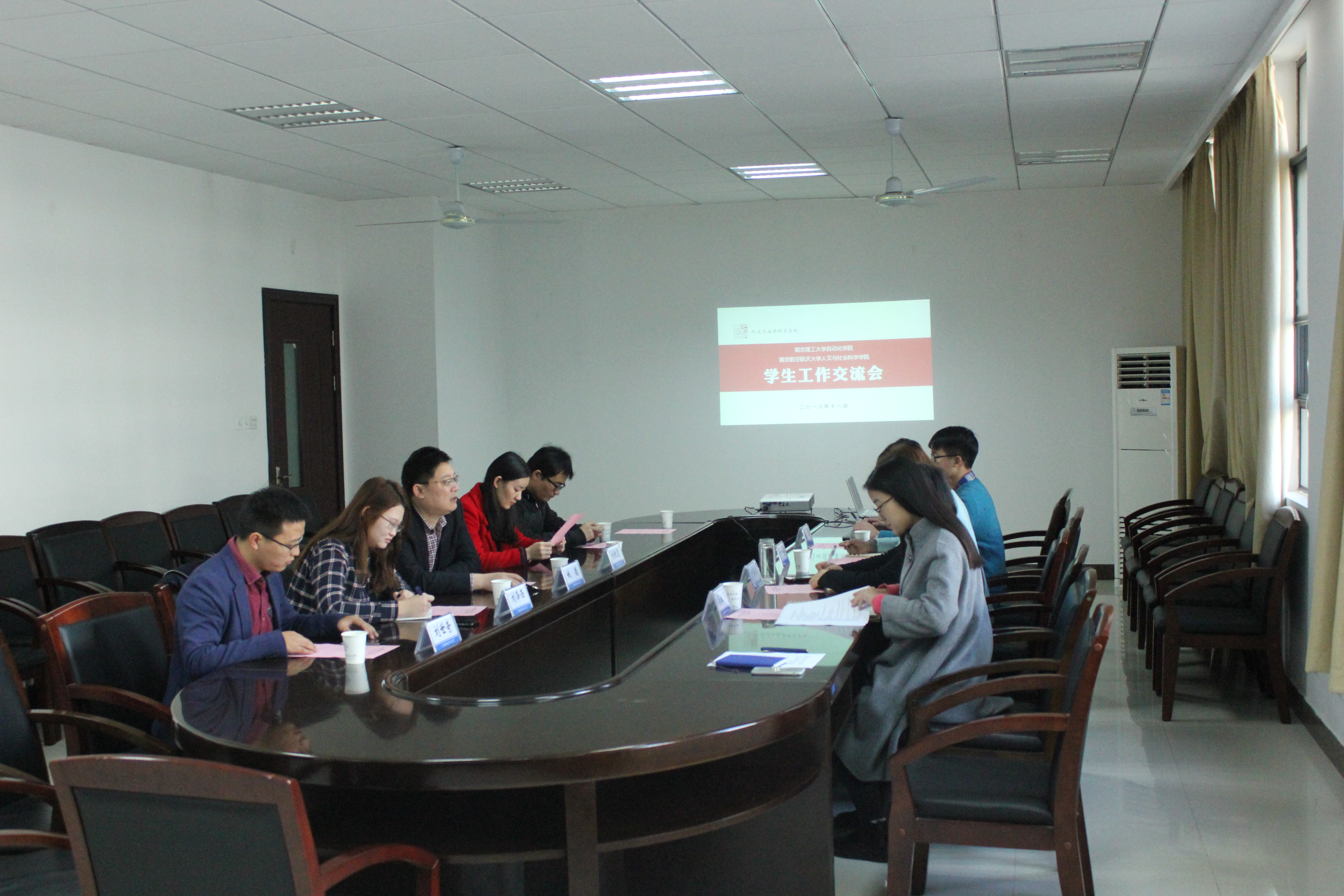 11月11日上午,南京理工大学自动化学院党委副书记、副院长姚德等一行6人来av中文 进行学生工作座谈交流。学院学生工作负责人尹春苹,院团委书记卢一亭,辅导员马驰飞、陈雷,院av中文-av中文官方最新无码全集页主任王宇婷同学参与了座谈。