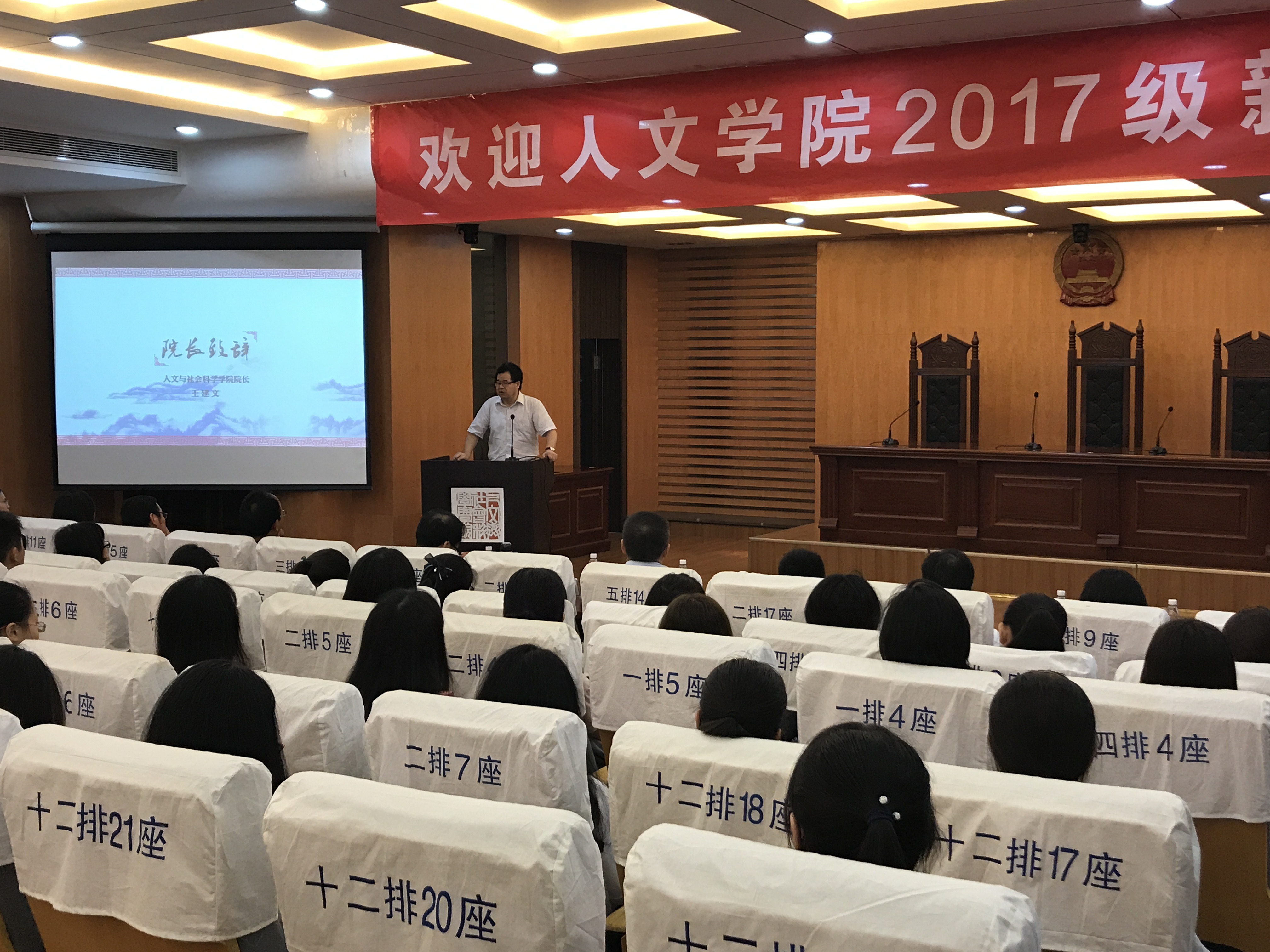 9月4日下午两点,av中文 2017级新生见面会于av中文 楼模拟法庭举行。全体学院领导、学科负责人、专业负责人、系主任、系书记和各班班主任、教师代表、学院行政、辅导员参加了本次见面会,共同迎接来自五湖四海的2017级本科及研究生新生。
