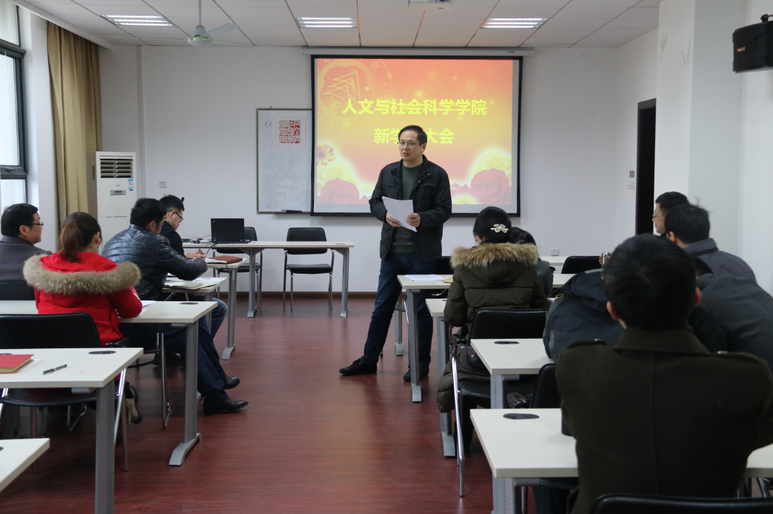 王建文院长传达了学校新学期第一次院长联席会会议精神,对2017年学院重点工作和年度财务情况进行了通报,对2018年工作进行了展望,并围绕重点内容进行了部署。第一,特色精品文科建设,探寻内涵与特色,谋求学科发展与建设突破;第二,外引内培,推动高层次人才培养,鼓励教师积极申报国家、省部各类人才工程;第三,全面加强人才培养工作,深入推进实施本科生导师制和师德师风建设,全面开展研究生学术沙龙,营造浓郁学术氛围;第四,积极拓展办学资源,重视智库与研究基地建设,推进与地方、行业合作办学,发挥学科优势,服务社会。王建文院长强调,学院办学要充分调动所有人的积极性,依靠和发挥教职工的智慧,抓住社会和行业机会,用开放的心态、积极的状态、奋斗的常态,实现学者学科学院的共同发展。