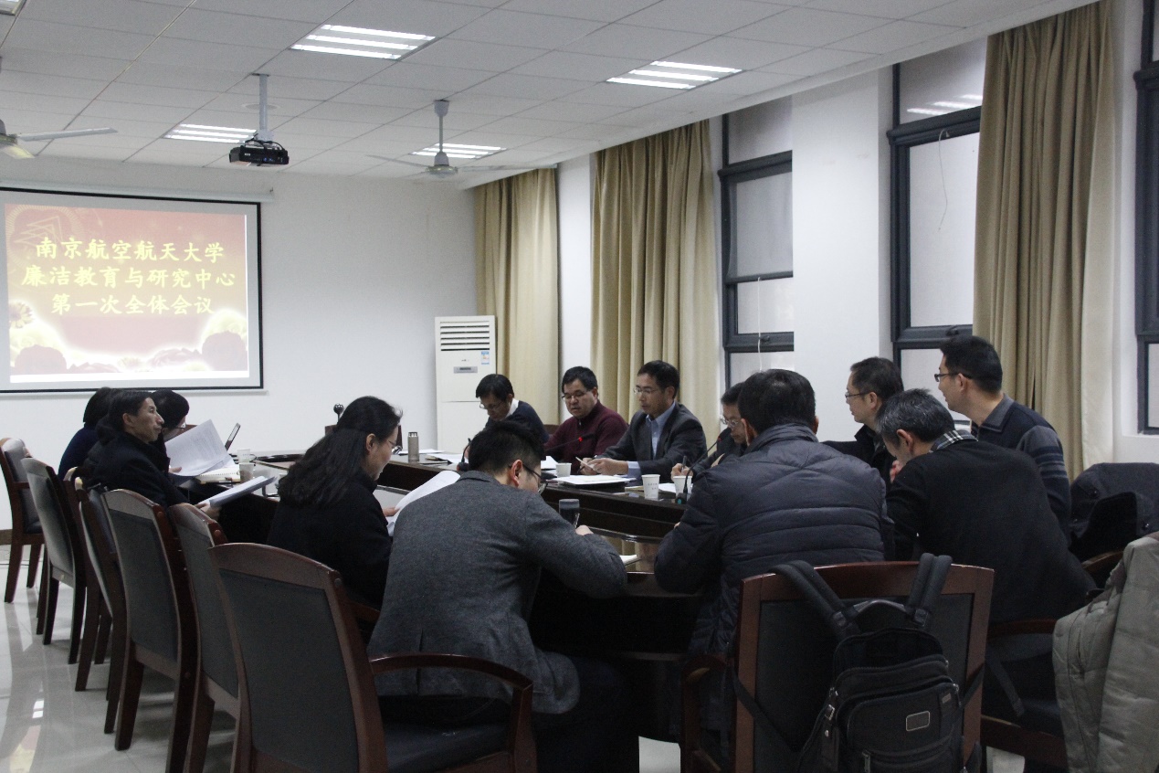 2018年12月25日下午,廉洁教育与研究中心第一次全体会议在av中文 召开。av中文 纪委书记、研究中心主任杭育新主持会议。人文院院长、中心副主任王建文,纪委副书记、中心副主任张海艮等相关成员参加会议。