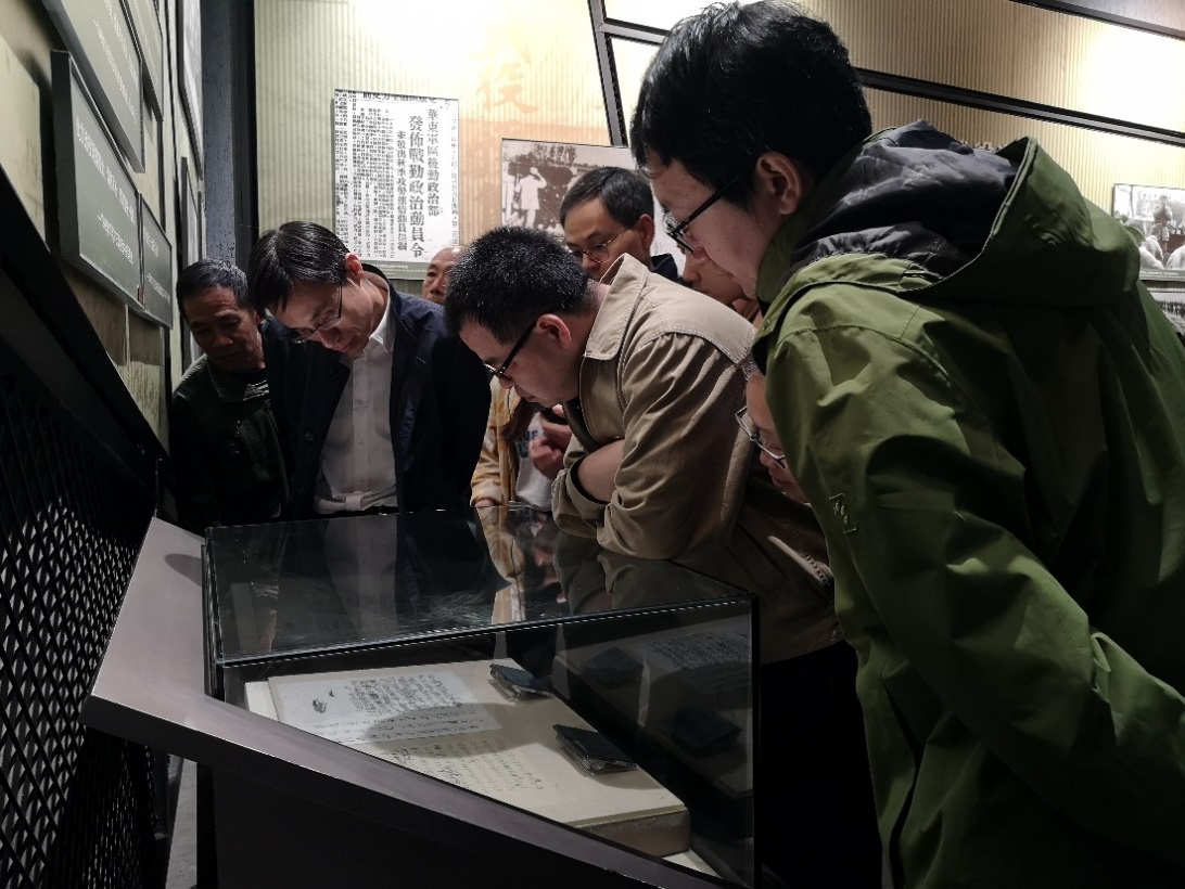 随后,党员教师们参观了徐州淮海战役纪念馆。纪念馆是为了纪念淮海战役的伟大胜利、弘扬老一辈革命家们的革命精神而建立的,分为前厅、序言厅、战役厅、支前厅、烈士厅、后厅六部分,陈列了大量珍贵的历史照片、历史遗物、人物蜡像和战争指挥图等,还原了淮海战役的历史场景与英勇事迹。党员教师们深切感受到,在那段烽火硝烟的战争年代里,共产党员的勇敢与担当,坚定与忠诚,以及党领导下的人民群众所具有的强大战斗力,党与人民群众之间不可分割的血肉联系。