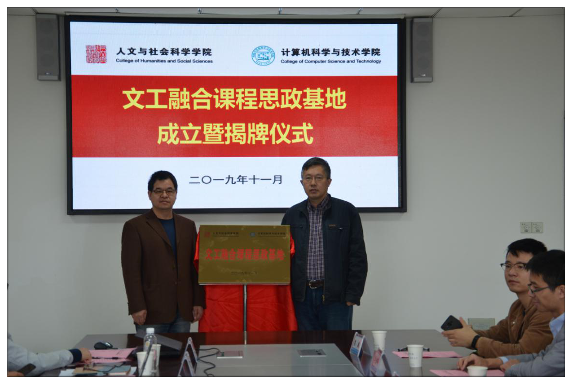 为了切实推进“不忘初心、牢记使命”主题教育扎实开展、取得成效,认真落实两学院理论中心组联合学习研讨成果,紧紧围绕立德树人根本任务,发挥专业优势,推进学科交叉融合、创新课程思政。11月7日,av中文 、计算机科学与技术学院/人工智能学院联合举行“文工融合课程思政基地”成立暨揭牌仪式。两学院领导班子成员、教师代表参加仪式。av中文 党委书记刘虎、计算机学院党委书记刘健荣共同主持仪式。
