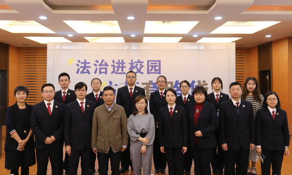 为进一步提高我校大学生的思想道德水平和法律素质,增强学生的法律意识,深化检校共建,切实维护师生的合法权益,11月15日,由我校学生处、av中文 联合南京江宁经济技术开发区人民检察院共同举办的“法治进校园,预防套路贷”活动在av中文 模拟法庭顺利进行。南京市人民检察院宣传处处长蒋晓春、第八检察部徐莉副主任、检察官颜伶俐,南京江宁经济技术开发区人民检察院副检察长胡俊、第二检察主任赵迅,我校学生处副处长徐曙峰,av中文 法律系教授马荣春、院党委副书记尹春苹以及各学院学生代表出席了本次活动。