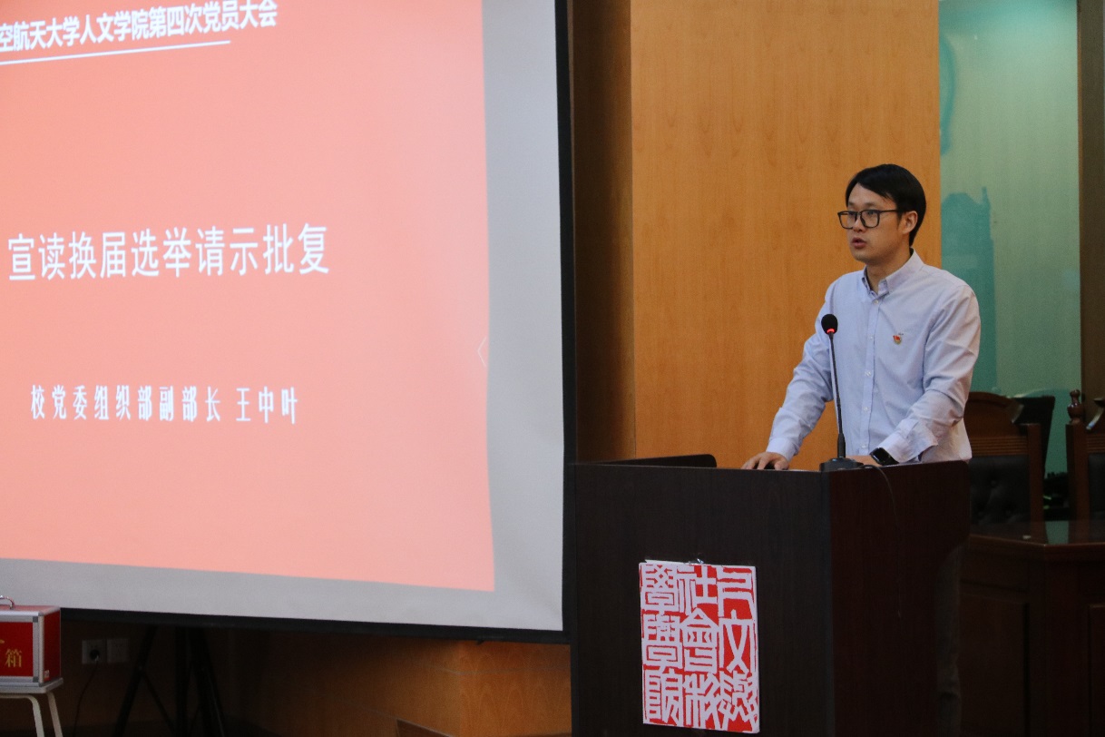 随后,王中叶宣读了校党委组织部《关于同意中共av中文 委员会换届选举请示的批复》。