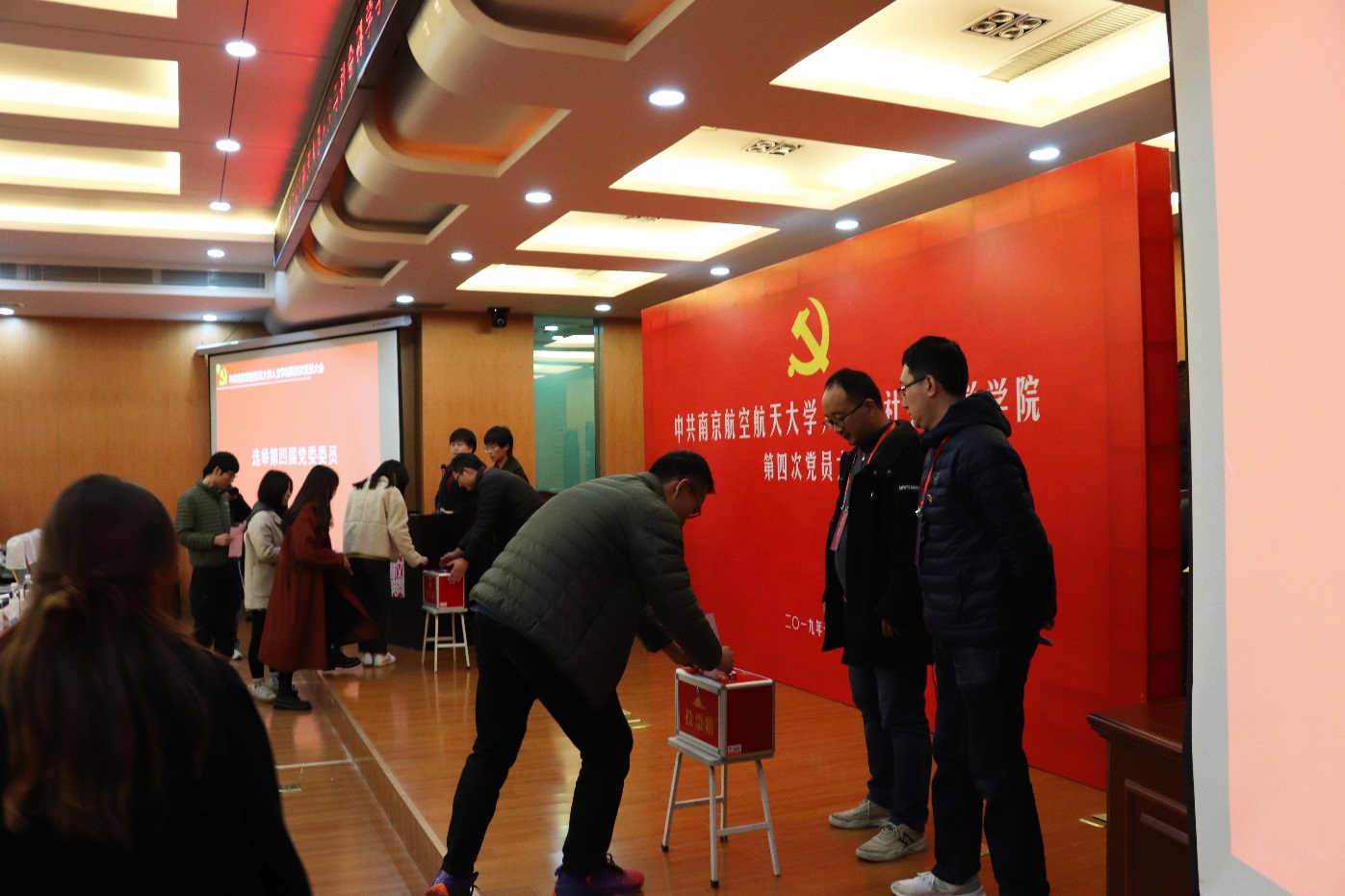 2019年11月29日,中共av中文 第四次党员大会在将军路校区av中文 召开。校党委常委、副校长黄志球、组织部副部长王中叶出席了会议,学院无党派人士和党外教职工代表列席了会议。会议由学院党委副书记尹春苹主持。