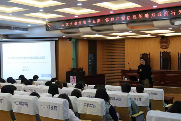 12月11日下午16时,第十五期人文大讲堂在av中文 模拟法庭开展,温州大学发展规划处处长陈宝胜教授应邀开讲。陈教授以他最新的学术研究为基础,为大家带来题为“邻避冲突治理的地方政府行为逻辑”的精彩讲座。讲座由av中文 党委书记刘虎主持,党委副书记尹春苹、部分教师、各个专业的本、研学生一同参加了此次讲座。