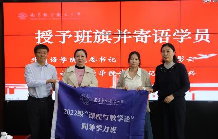 随后,左彤云和楚广兴为学员授予班旗,并寄语各位学员在学习中进一步精进学术水平,传递知识火炬。