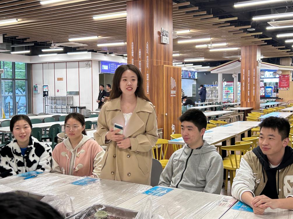 辅导员聂小芳向同学们介绍了本次活动的意义和初衷。清明节是我国重要的传统节日,吃青团是传统民俗。希望同学们能通过做青团的方式,抚今追昔,缅怀先烈,珍惜如今的美好生活。学生代表何雨呼吁同学们,要树立正确的劳动观,通过做青团,亲临、亲触、亲做、亲悟,增强以劳为美的意识与社会责任感。