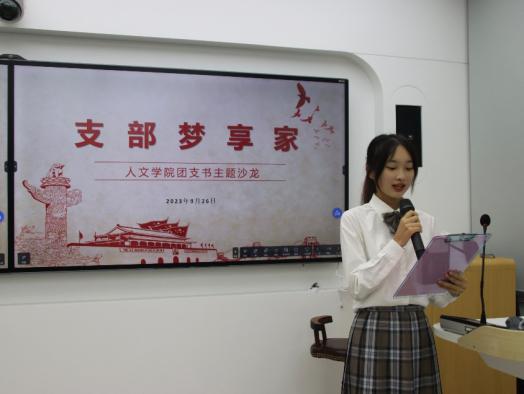 1021402支部李佳宁、1021202支部叶子田田作为优秀团支书代表分享工作经验。李佳宁结合团支部建设实际,讲解了团支书日常工作开展中的注意事项。叶子田田则针对“一支部一项目”的申报工作进行了详细介绍。