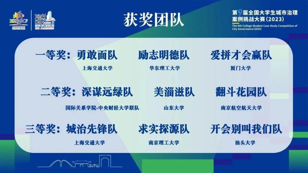 10月27日—29日,第九届全国大学生城市治理案例挑战大赛决赛在上海交通大学举办。本次大赛作为2023全球城市论坛的子活动之一,由上海交通大学主办,国际与公共事务学院和中国城市治理研究院联合承办。本届案例大赛共吸引了62所高校的90支队伍报名,经过初赛与复赛的激烈竞争,最终我校与上海交通大学、复旦大学、厦门大学、浙江大学等18支队伍晋级决赛。(作者:姚珺兰、何雨)