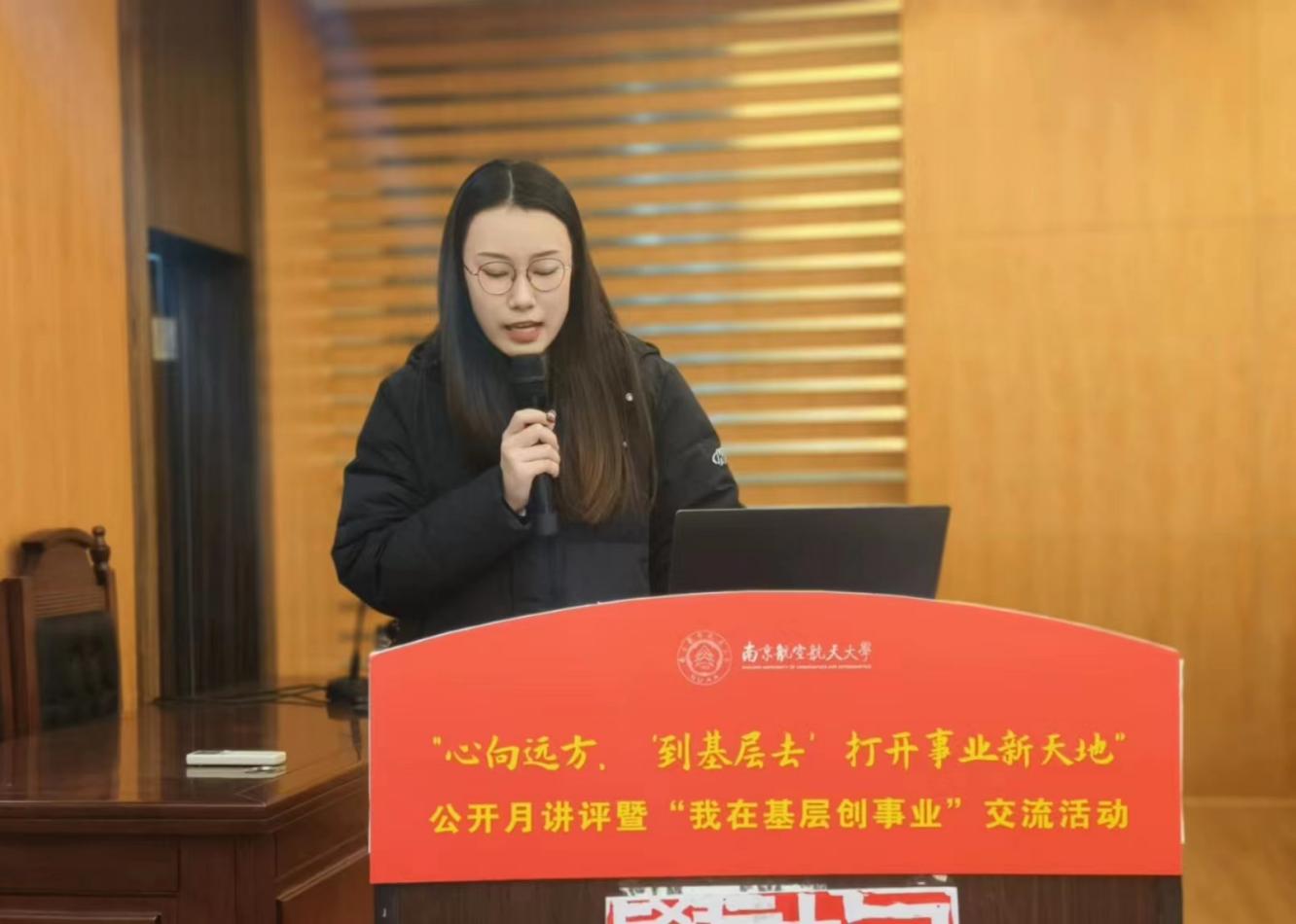 刘思辰总结点评,她对本次公开月讲评给予了充分的肯定。她表示,近年来在学校的持续引领下,越来越多的毕业生选择把个人职业发展同国家民族的命运紧密结合,积极投身基层社会治理、服务国家战略需求,展现出南航学子的家国情怀和责任担当。她希望同学们不断锤炼政治素养、不忘初心、学以致用,为服务国家经济社会发展和基层治理贡献“南航智慧”和“人文力量”。