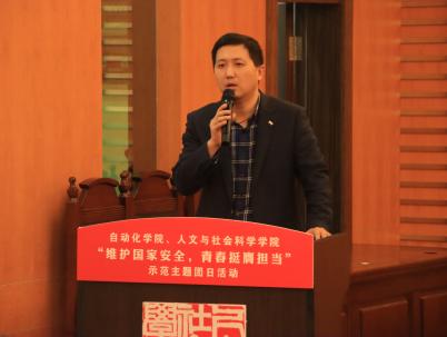 今年是习近平总书记提出总体国家安全观十周年,也是第九个全民国家安全教育日。为提升两院师生的国家安全意识,强化法治观念,激发广大团员青年积极参与维护国家安全的责任感与使命感,4月15日下午,自动化学院与av中文 联合在模拟法庭举办以“维护国家安全,青春挺膺担当”为主题的示范团日活动。校保密处副处长张亚丽、自动化学院党委副书记丁琛、av中文 法学专业教授何邦武、av中文 党委副书记刘思辰以及两院团委书记和团员青年代表参与活动。