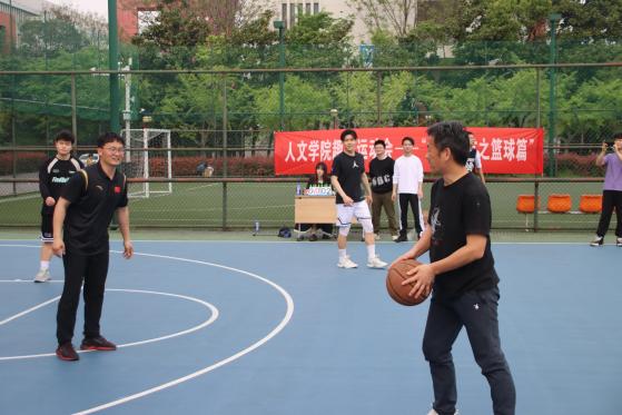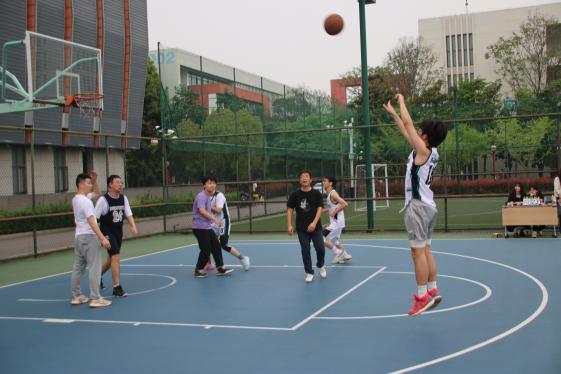 4月11日下午,av中文 在东区篮球场举办午后师生阳光汇“以球会友”活动,学院师生代表共组成3支代表队参与角逐。